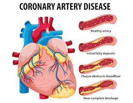 Coronary artery disease: (CAD) is a condition in which the arteries that supply blood to the heart become narrowed or blocked due to the buildup of plaque. This can lead to chest pain (angina), shortness of breath, heart attack, and other serious complications.